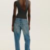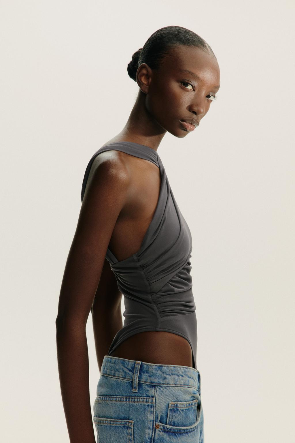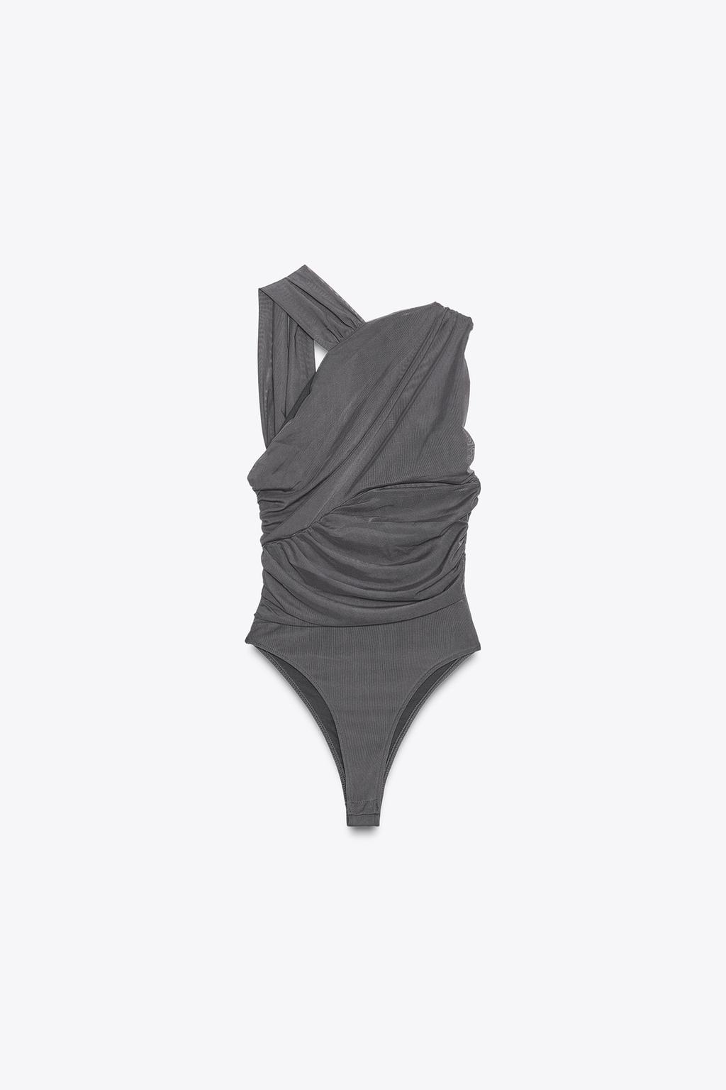 BODYSUIT VẢI TULLE XẾP NẾP CỔ LỆCH